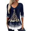 3/4 Sleeve Shirts For Women Christmas Print Graphic Tees Blouses Casual Plus Size Basic Tops Pullover