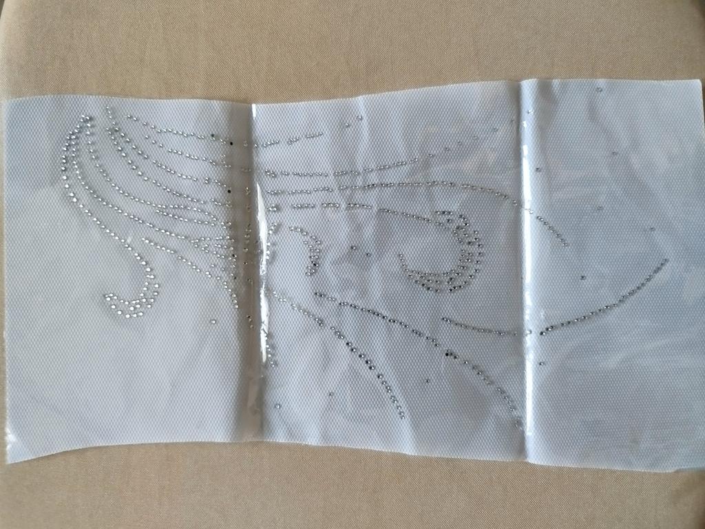 Hot Fix Rhinestones Feather Motif Crystal Pearl Iron On Heat Transfer Design