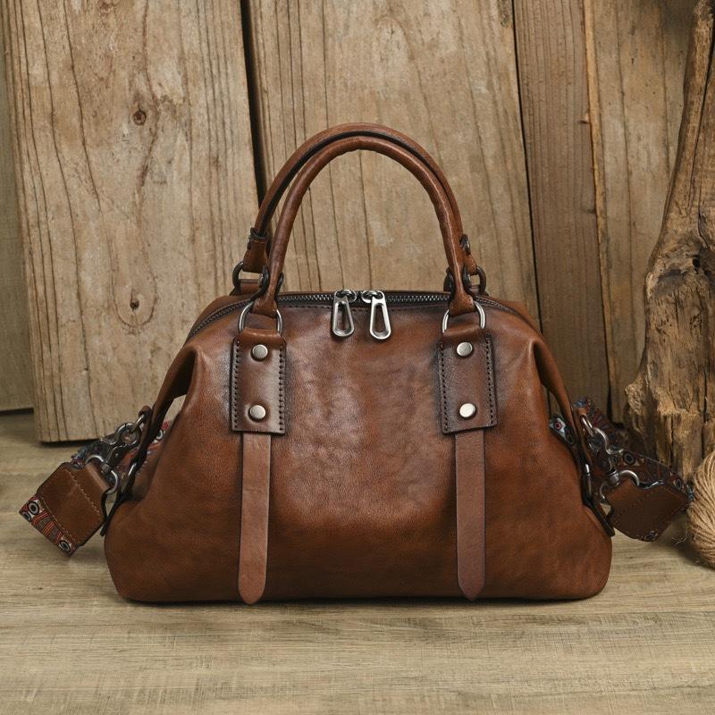Johnature Retro Women's Bag Genuine Leather Large Capacity Handbag Soft Cowhide Versatile Shoulder Bag