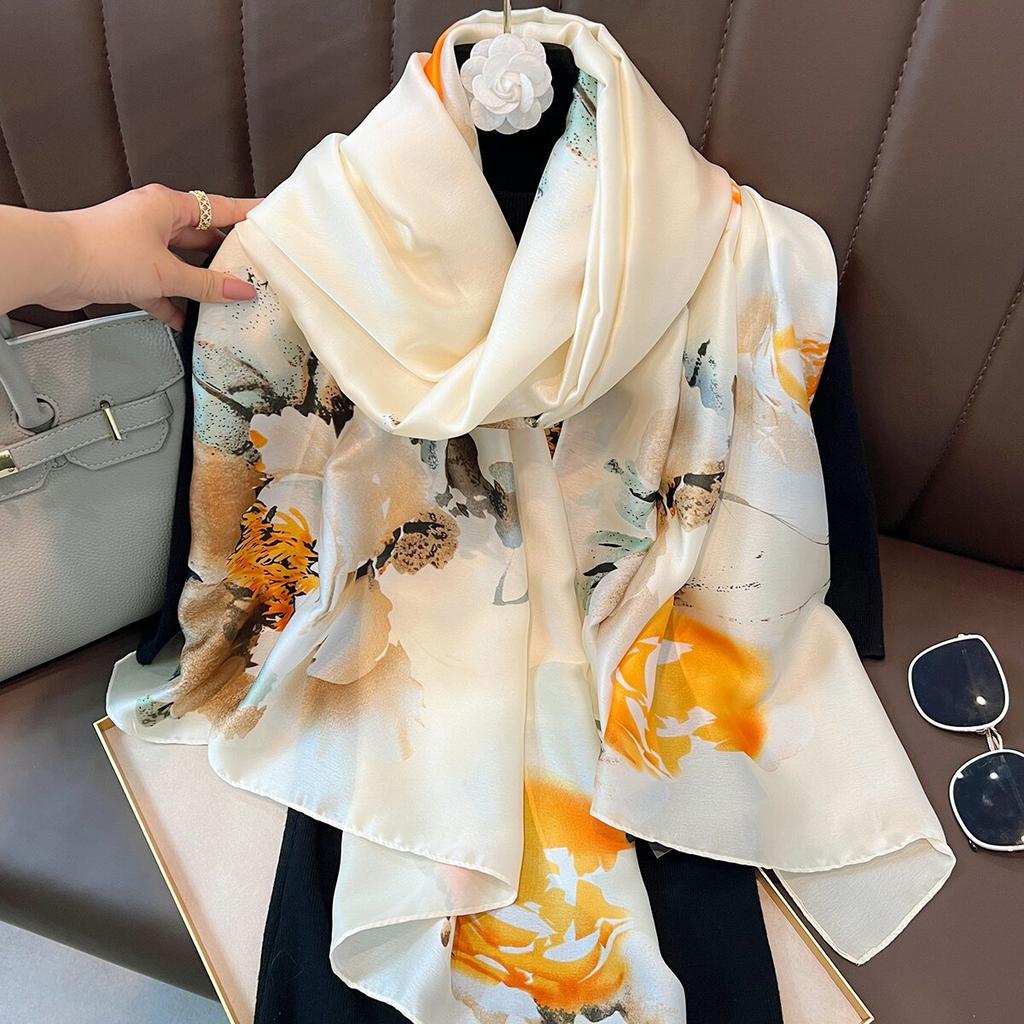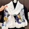 Ink and Wash Danqing High-grade Silk Scarf, Sunscreen Extended Printing Imitation Silk Scarf, Women's Long Silk Scarf, Beach Scarf