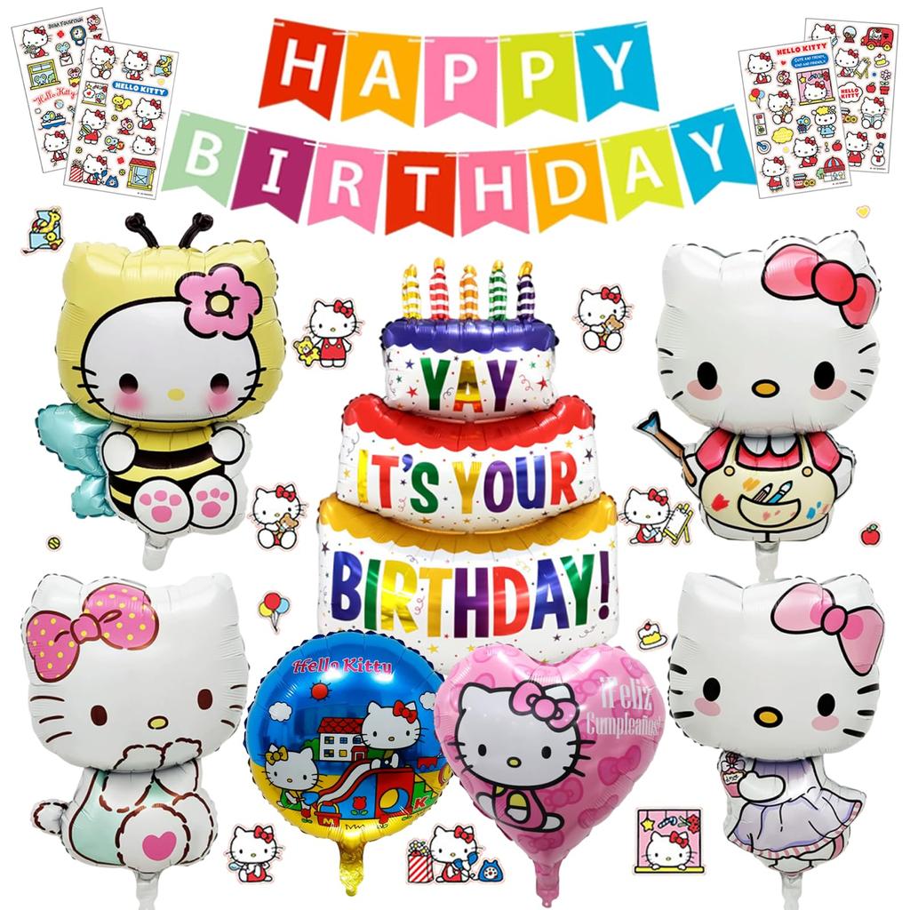 Perfect decorative effect for birthday parties: The garland creates a happy birthday atmosphere, and the character balloons and three-color balloons add to the excitement of the party. Adding detailed decorations with stickers makes the world of Hello Kitty even more realistic. Perfect for birthday decorations.