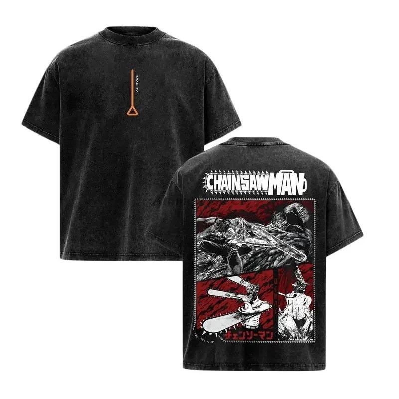 Anime Chainsaw Man Denji Graphic T-shirt Vintage Washed Oversized T Shirt Men Women Clothing Pure Cotton Short Sleeve Tees