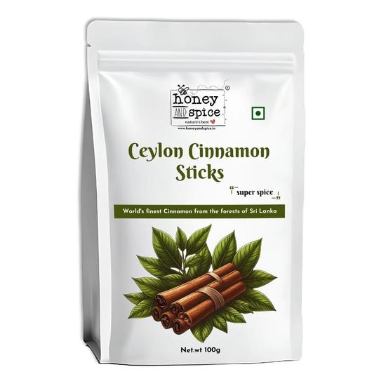 Honey and Spice Ceylon Dalchini Cinnamon Sticks Organic Srilankan - (100g) (True Srilankan Barks/Rolls) , 100% Natural