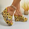 Women’s Floral T-Strap Wedge Sandals, Thick Sole, Summer Casual Slip-Ons, Wide Size