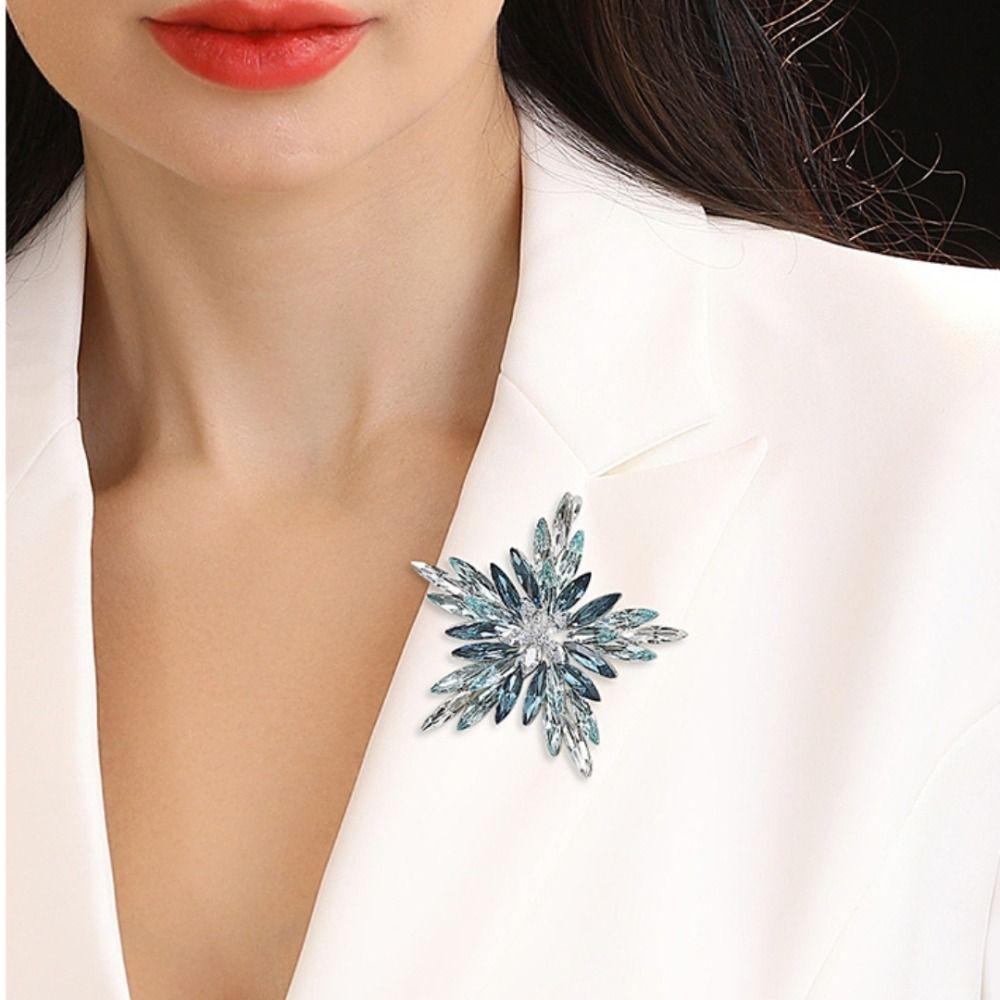 Creative Star Pins Blue Purple Women Brooches Badge Fashion Snowflake Flower Brooch Gift