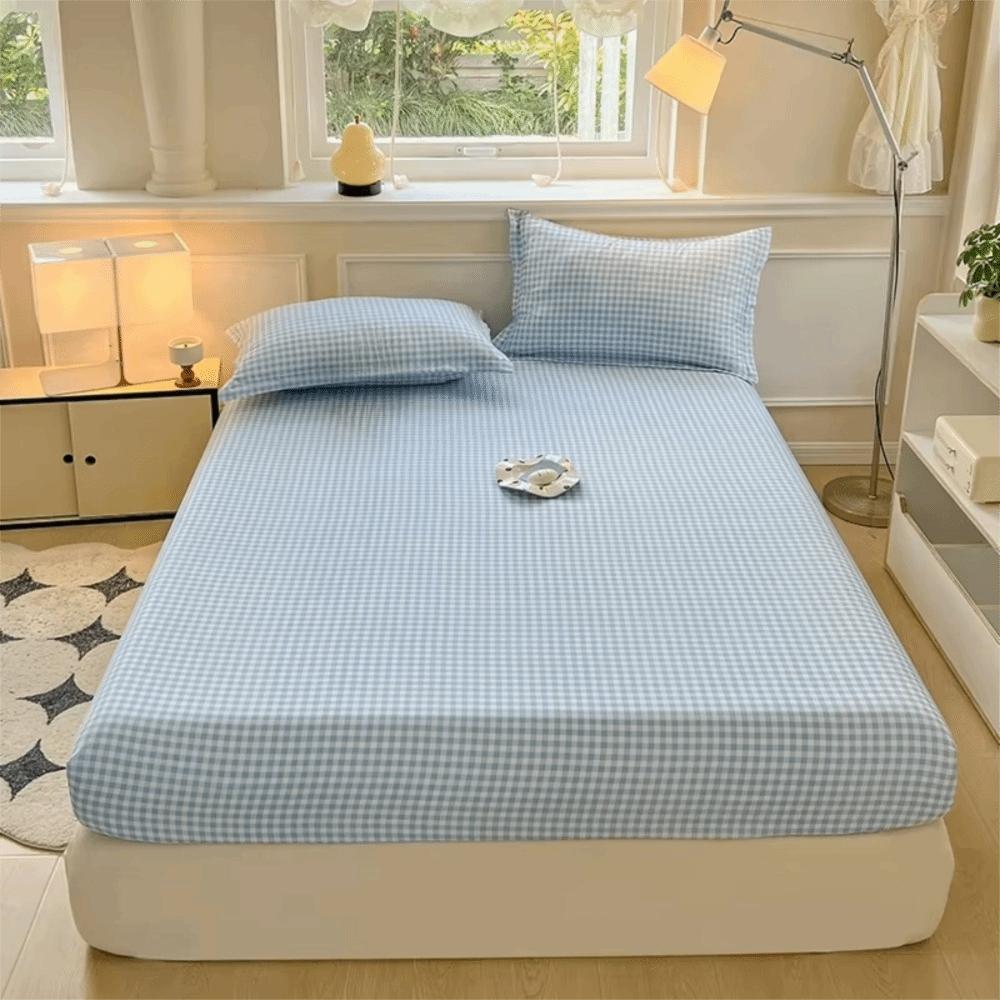 Practical All Inclusive Single Plaid Mattress Cover Non Slip Skin-friendly Bed Sheet Rustic Style Elastic Band Bed Cover Bedroom