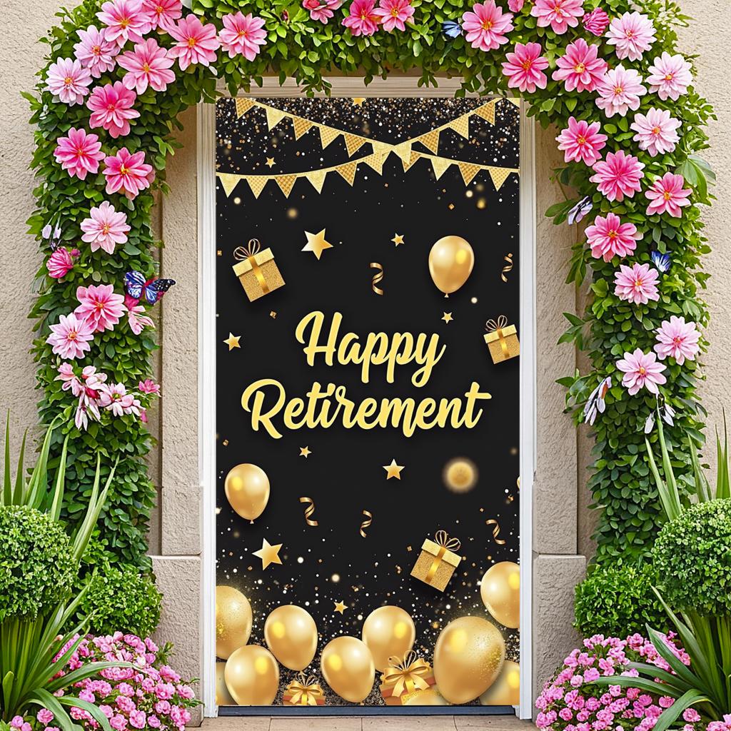 Retirement Party Banner Gift Box Design Party Decoration Polyester Material Party Backdrop for Photo Shoot Indoor Celebration