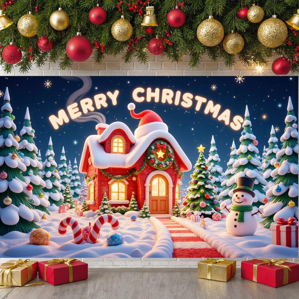 Christmas Backdrop Festive Garland Xmas Display Xmas Backdrop Santa Hat Accent Merry Christmas Banner For Photo Shoot Festive