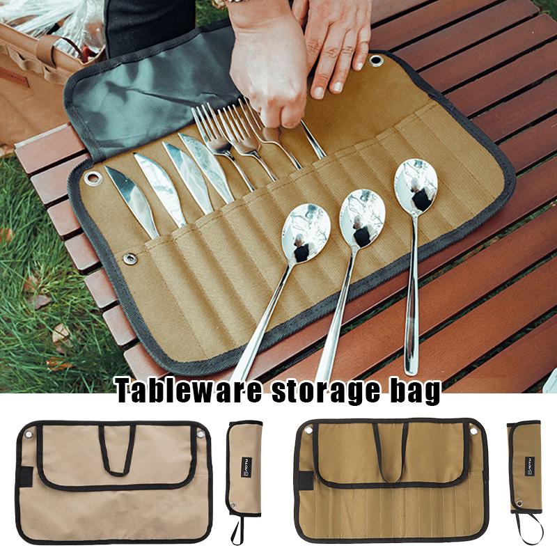 Foldable Outdoor Camping Cutlery Storage Bag Chef Knife Bag Roll Bag Chopsticks Spoon Fork Pouch Organizer Carry Case