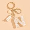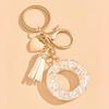 26 Initials Alphabet A To Z Letter Keychain Beige Heart-Shaped Tassel Keyrings Fashion Bag Hanging Ornament Car Trinket Gifts