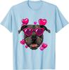 Pit Bull Dog Valentines Day Heart Sunglasses Graphic T-Shirt Soft Cotton Casual Tee