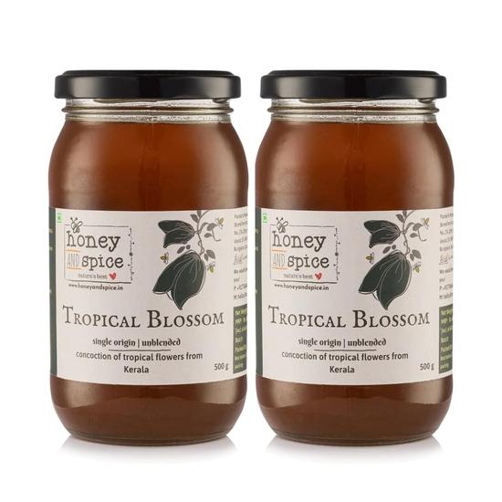 Honey and Spice Tropical Blossom Honey 100% Raw Natural Honey From the Plantations of Kerala Made by Apis Cerana Bees 500 G- Pack of 2