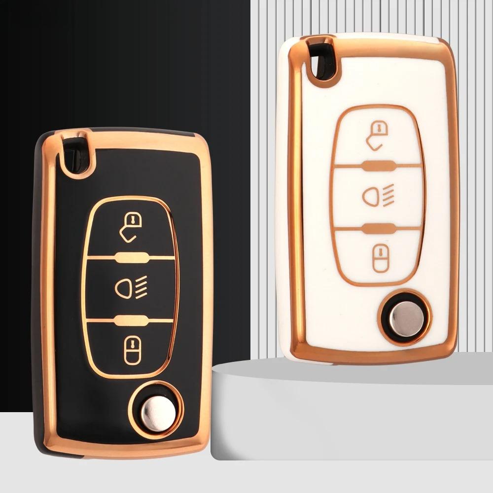 Fashion TPU Car Flip Key Case Cover Bag for Peugeot 107 207 307 308 407 607 3008 5008 Citroen Xsara Picasso C5 C6 C8 Accessories