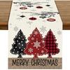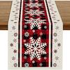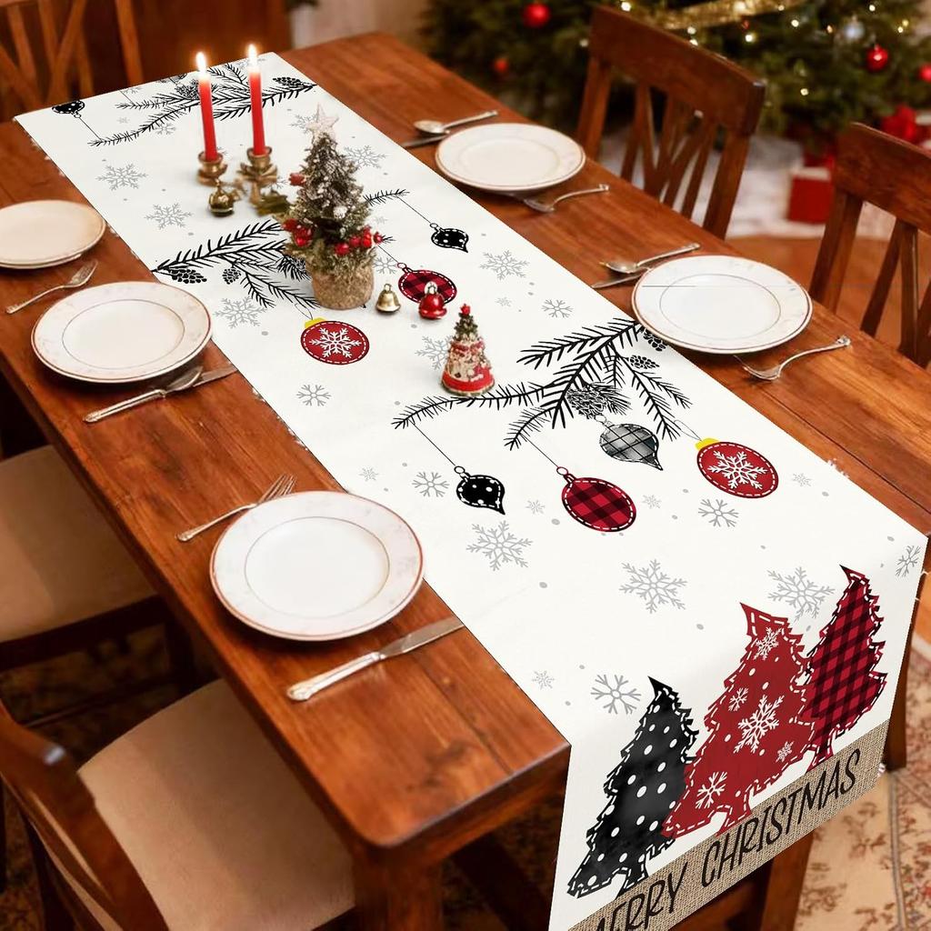 72 X 13 Inch Christmas Table Runner – Red and Black Plaid Christmas Tree and Ornament Holiday Table Decoration with Snowflakes for Dining Room,