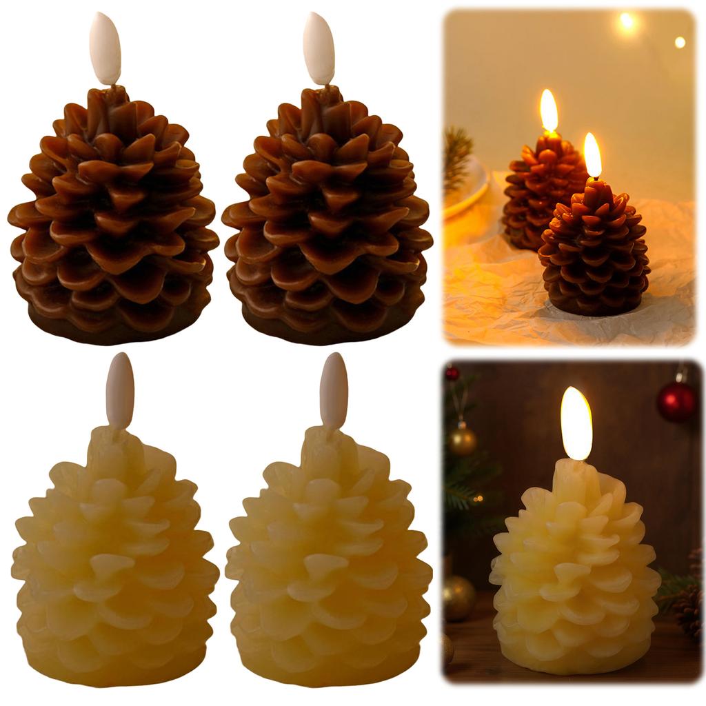 Pack of 2 LED Pine Cone Candle Pinecone Shaped Realistic Wax Candles Flameless Candle for Christmas Holiday Decoration