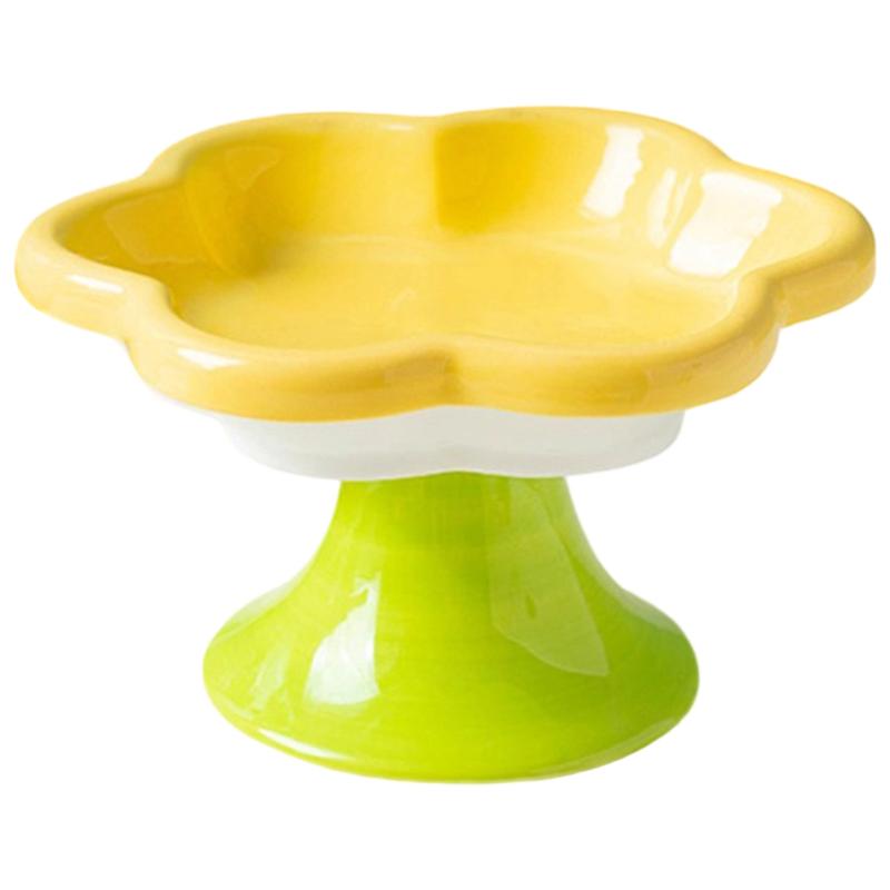 M-Modern-Raised Cat Bowl With Flower Design, Elevated Food& Water Plate Snack Dish Featuring Stand For Neck Protection Y