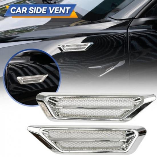 1 Pair 17*4.2cm Plastic Chrome Car SUV Air Flow Fender Side Vent Sticker Decor