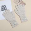 Fashion Korean Ins High-end Sense Solid Color Labeling Knitted Thermal Gloves Women's Versatile Cold-proof Five-finger Sleeves
