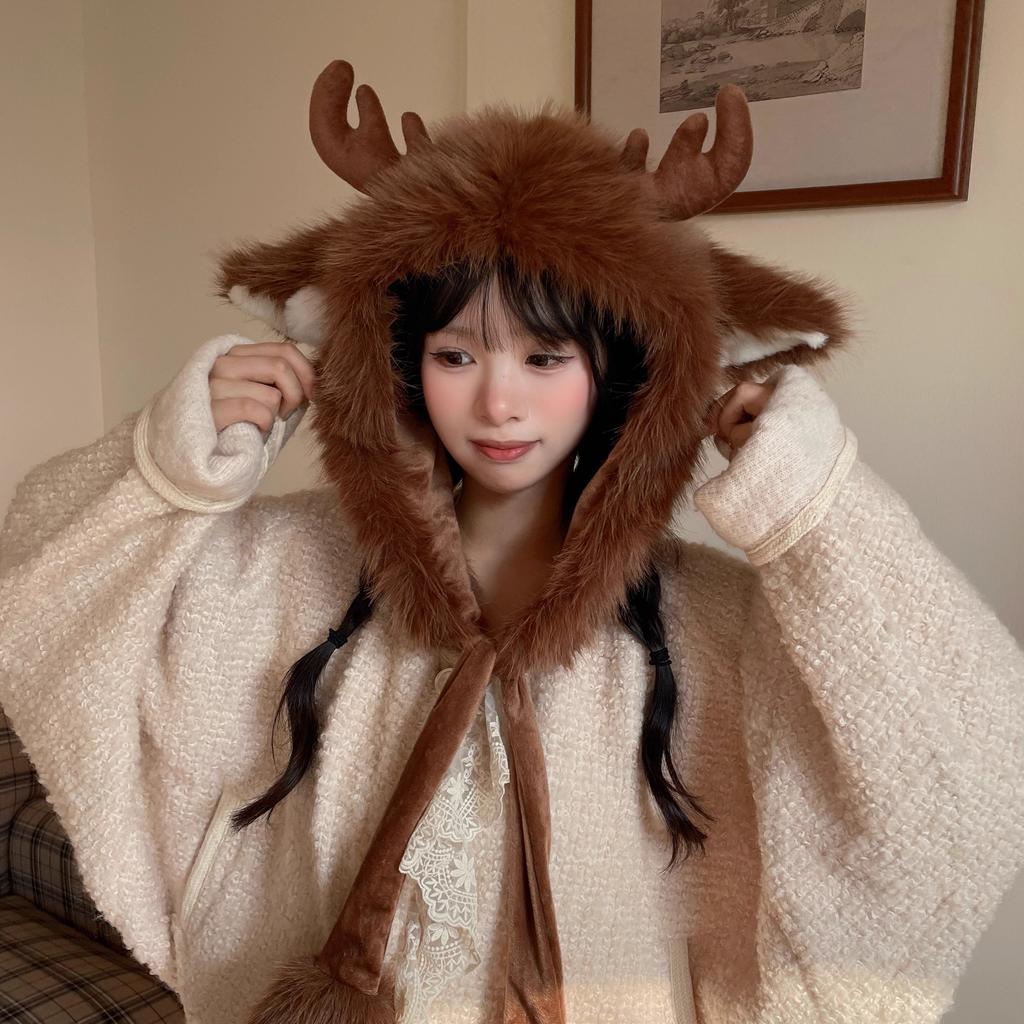 2025 Design Christmas Elk Horns Teddy Fleece Thunder Hat Women's Season Fleece Straps Ear Protectors Versatile
