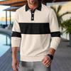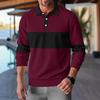 Men's Autumn 2025 Waffle Lapel Button Color-blocking Casual Polo Shirt Long Sleeve Base Layer T-shirt Men's Fashion