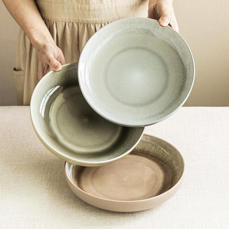 Kiln Change Shallow Bowl Japanese Ceramic Large Bowl Minimalist Style Tableware Bowl Household Bowl Round Bowl Large Vegetable Plate Salad Bowl