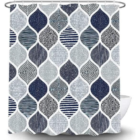 DYNH Boho Blue and Grey Shower Curtain for Bathroom, Dark Navy Blue Gray Geometric Stall Fabric Shower Curtains Set, Modern Fun Paisley White