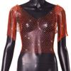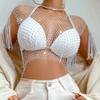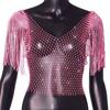 Rhinestone Rhinestone Fishnet Tops with Tassel Shawl See Through T Shirt with Tassel Shawl Women