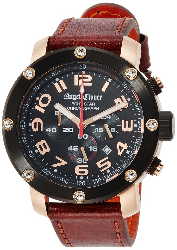 Angel Clover 8ght Star Men's Watch, Black Dial, Stainless Steel, Quartz Movement, 46mm, Official Warranty, NES46PBK-BRL, Brown