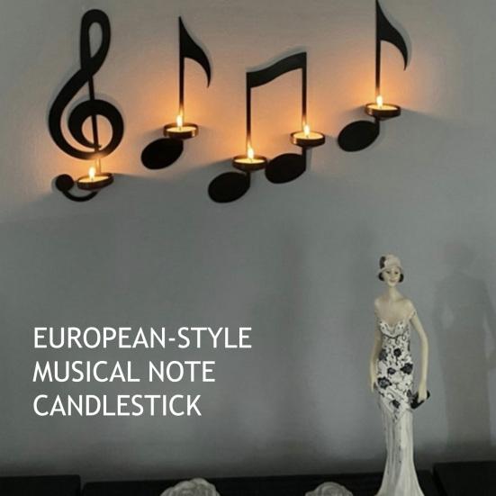 Black Music Note Candle Holder Vintage Wall Mount Tealight Holder Musical Symbol Wall Decor for Living Room Dining Hallway