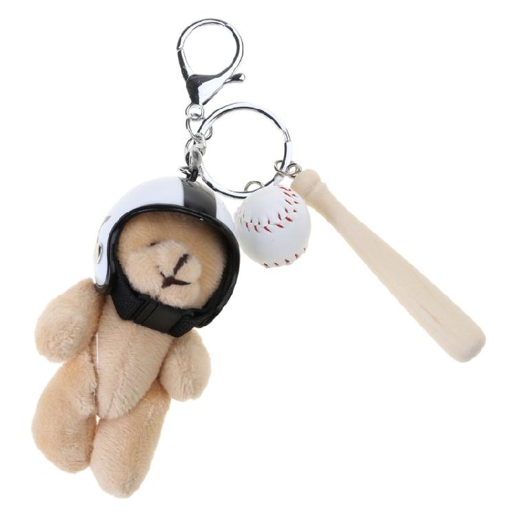Creative Plush Bear with Helmets Key Ring Animal Toy Keychain Fashionable Bag Pendant Hanging Charm for Wallet and Purse