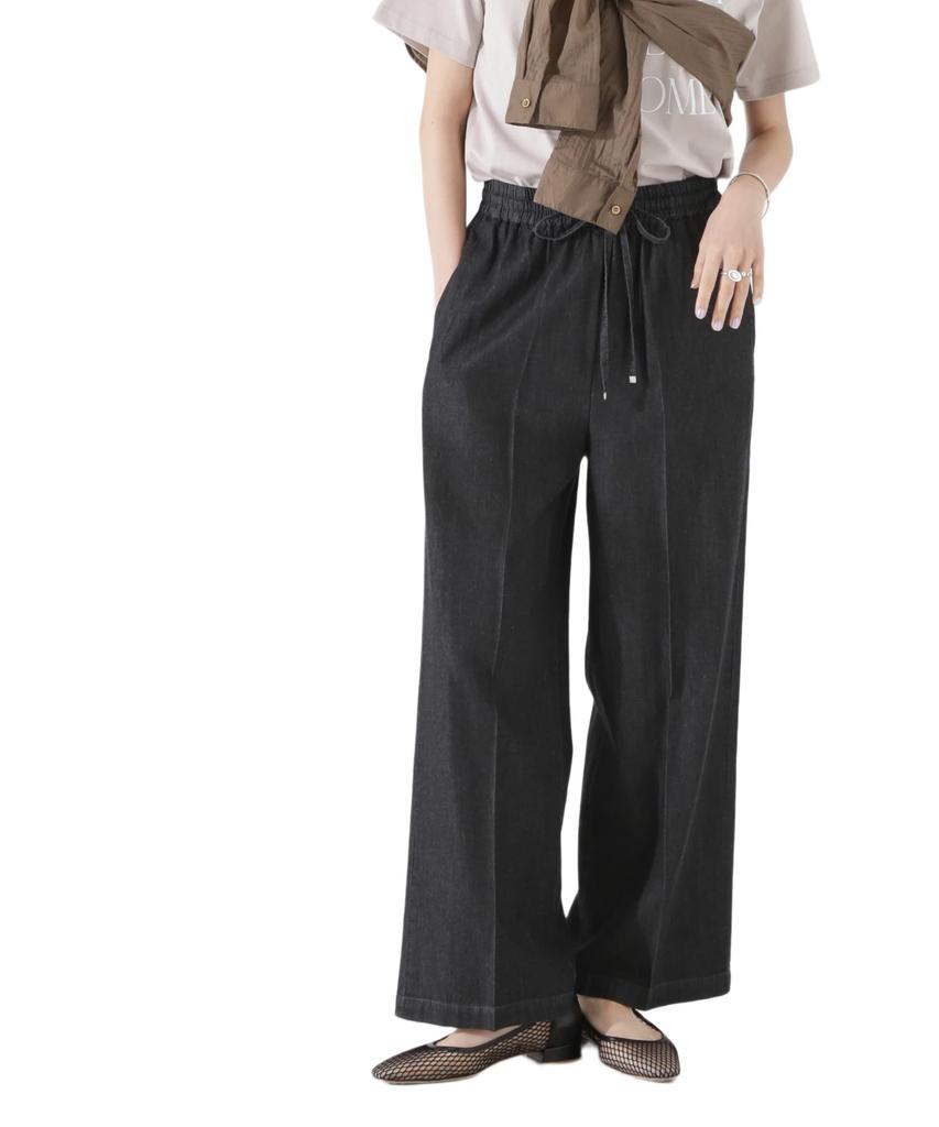 Nano Universe Light Denim Drawstring Pants with Center Press Be Paired with Other F 010 Black Women's (Can Items) 673-5127316
