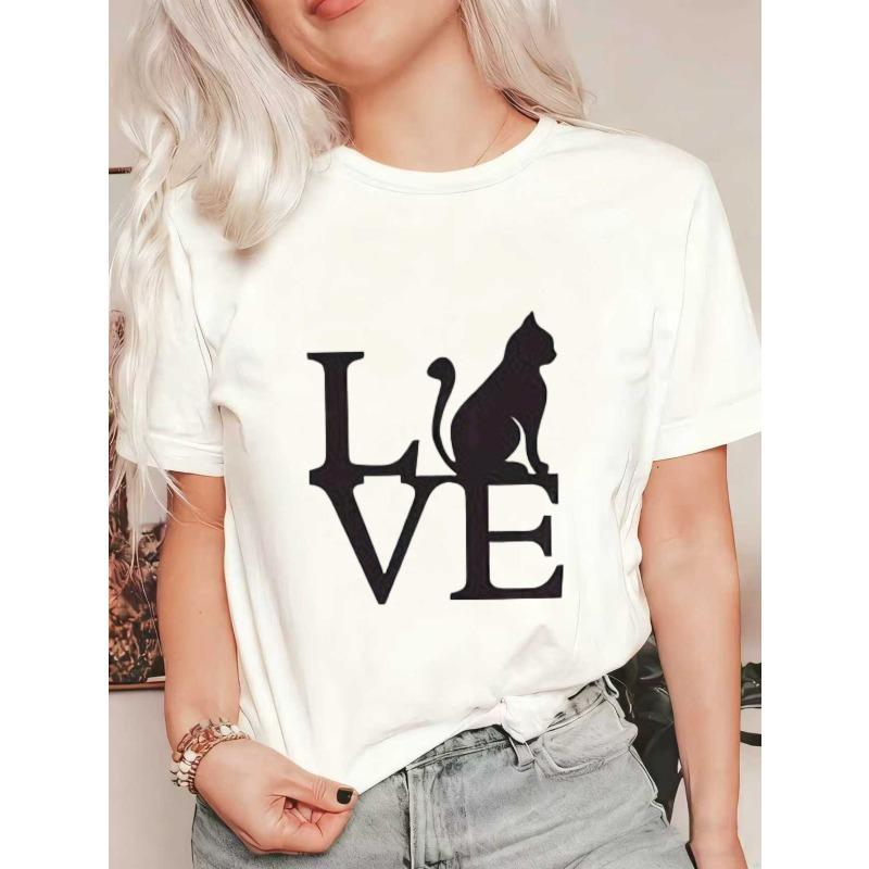 Oversized T Shirt Black Love Cat Print Graphic Tee For Casual Wear And Street Style