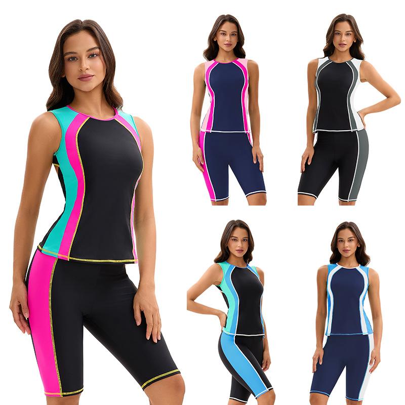 Sleeveless Conservative Split Swimsuit Women's Sexy Color Block Tight Swimsuit