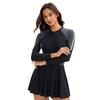 Conservative One-Piece Swimsuit Women's Color Matching Long Sleeve Sunscreen Surfing Suit Conservative Skirt Swimming Suit