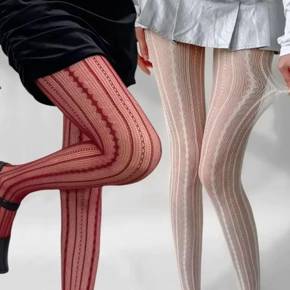 Sexy Hollowed Fishnet Pantyhose Elastic Breathable Mesh Stockings Striped Fishnet Stockings JK Style