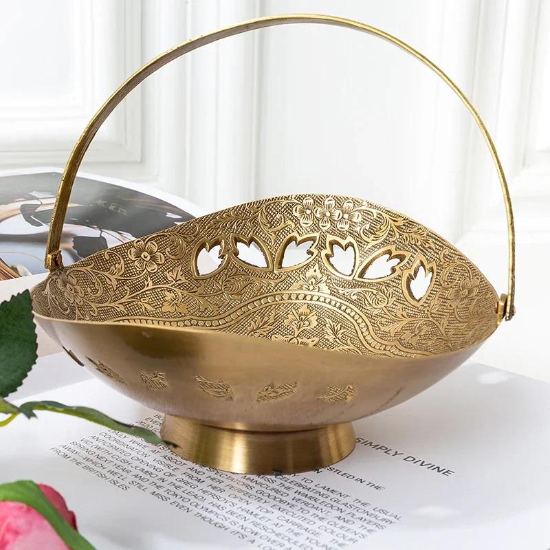European Style Brass Carved Fruit Bowl Hollow Out Household Tea Table Snack Porch Key Jewelry Storage Tray Elegant Fruit Tray