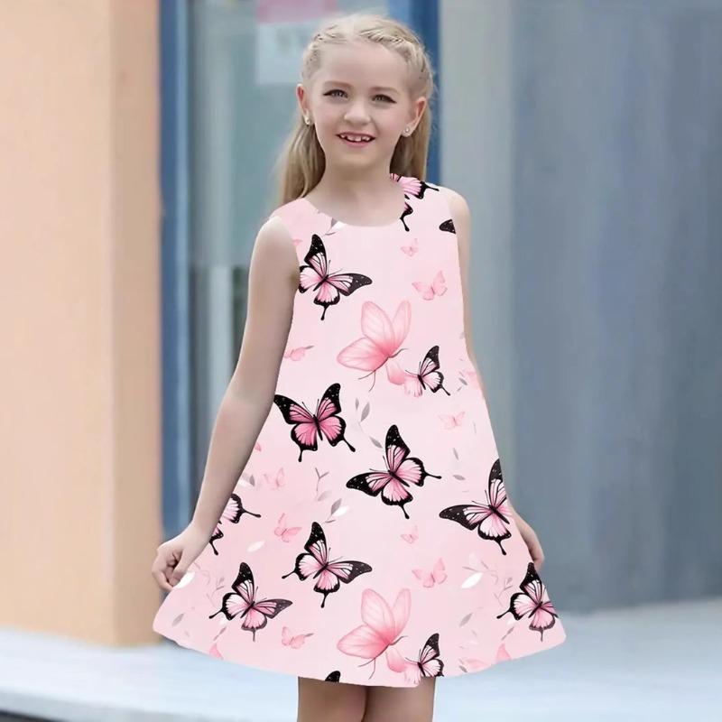 Stylish Cute Comfortable Butterfly Print Children's Sleeveless Women's Clothing Dresses Girls