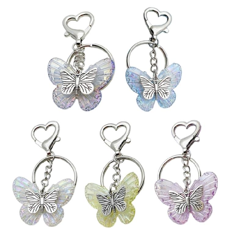Butterfly Charm Keychain for Women and Girls Transparent Keyring Colorful Key Pendant Acrylic Clear Key Chain Ornament