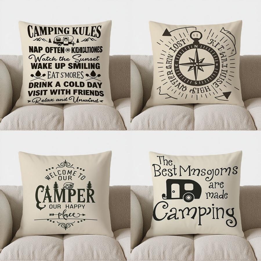 Home Decor Camping Rules: Nap, Smile, Eat S'Mores & Relax Pattern Cushion Cover Suitable For Sofa Bedroom Car Pillow Cover