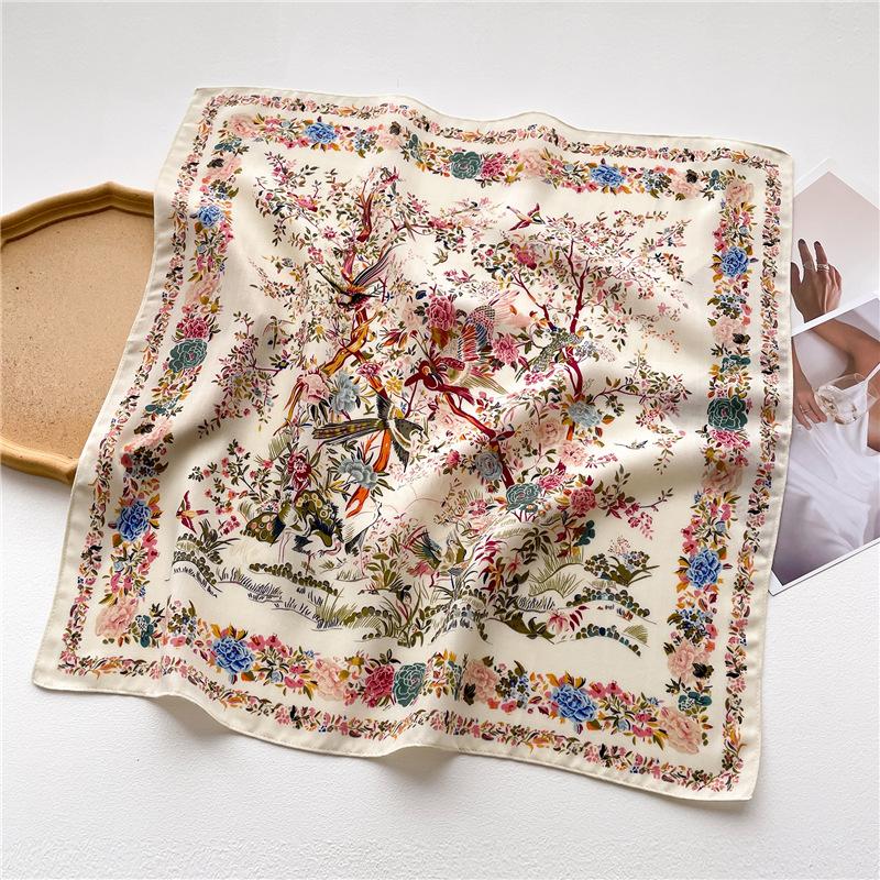 70cm New Fashion Cotton Square Scarf Women Floral Print Design Bandanas Lady Scarves Headband Handkerchief Hair Luxury Brand