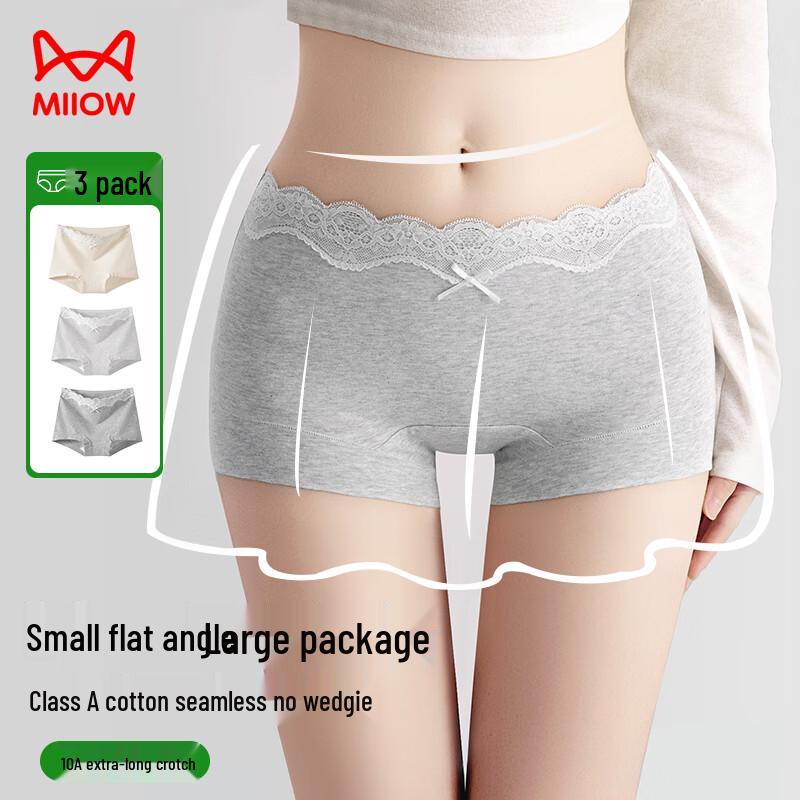 MIIOW Women's French Lace Antibacterial Flat-Leg Briefs, 3-Pack