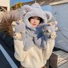 Cute Bear Ear Women Beanies Cap Thickened Plush Integrated Cap Scarf Hat Scarf Gloves Set Outdoor