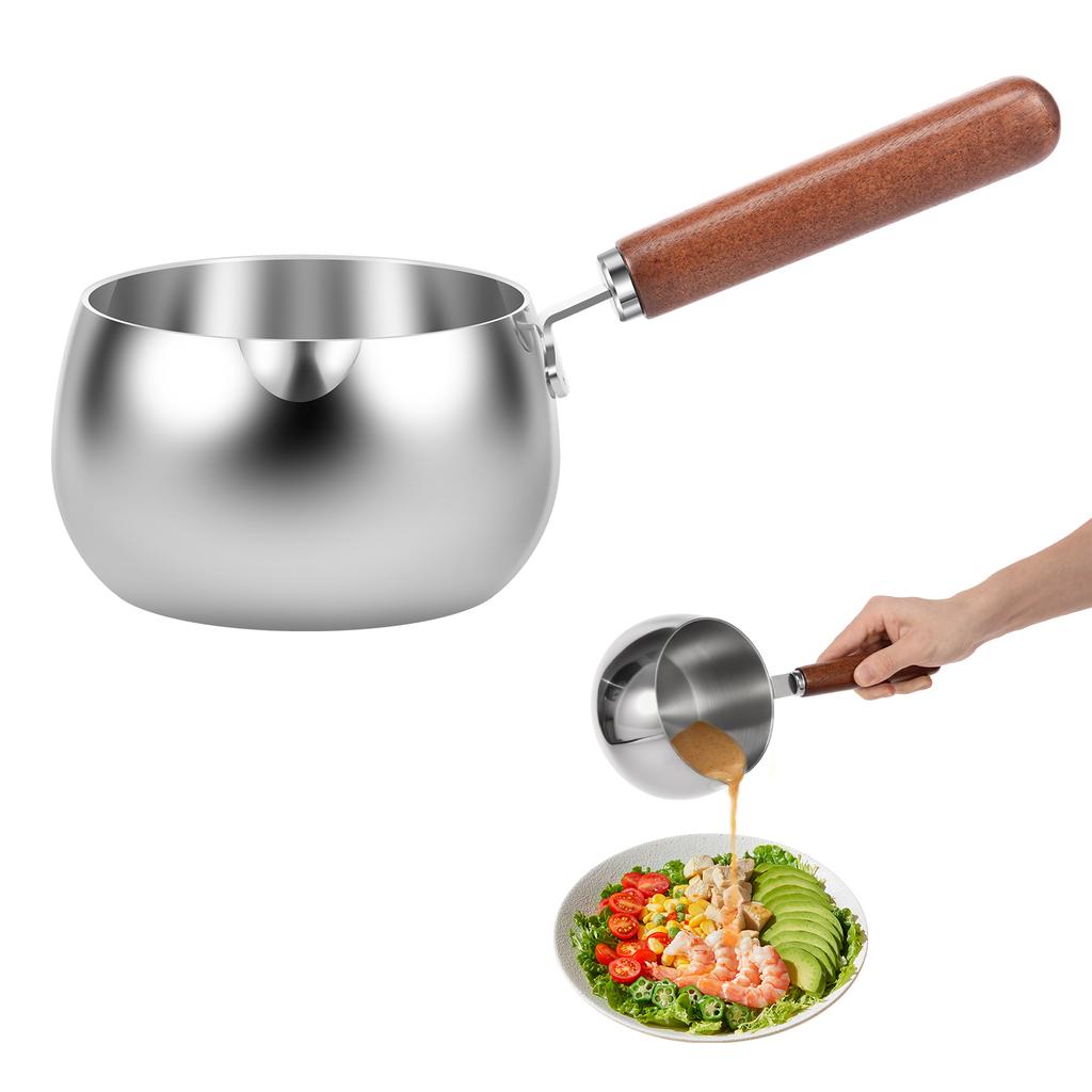 304 Stainless Steel Milk Butter Warmer Pot 800ml Kitchen Sauce Pot with Spout for Heating Milk Melting Butter Warming Sauces