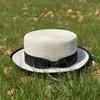 Car And Horse Lady Summer Visor Straw Top Hat Outing White Flat Top Hat Casual Millinery
