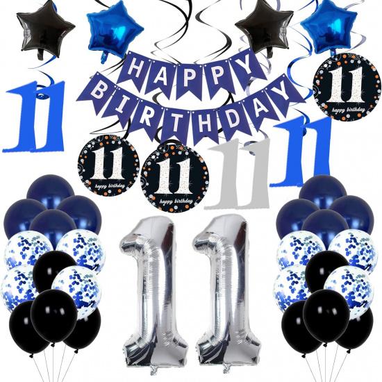 11th Birthday Decorations for Boys Girls - Navy Blue Birthday Decorations For Kids Party Supplies Including HAPPY BIRTHDAY Banner Balloons for