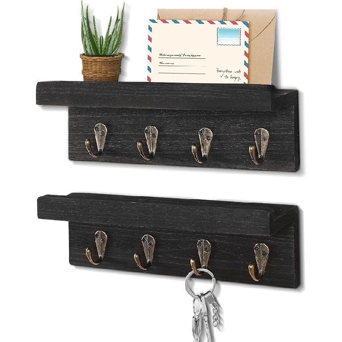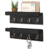 2 Pack Farmhouse Wooden Key Holder, Shelf with Hooks, Coat Rack Wall Mount, for Entryway, Bathroom, Kitchen (Black)