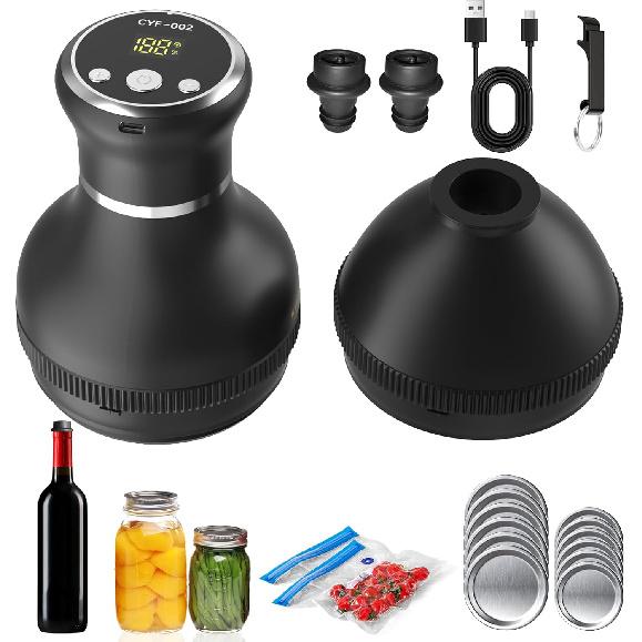 Electric Mason Jar Vacuum Sealer Kit for Wide and Regular Mouth Canning Lids, Vacuumable Bags & Wine Stoppers