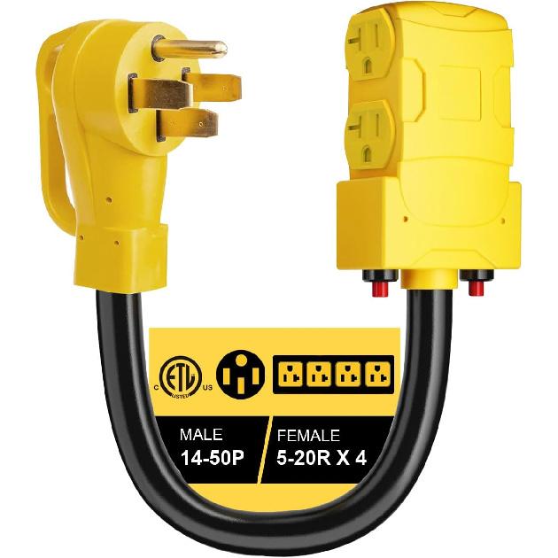 50 Amp To 20 Amp 110V RV Distribution Adapter, 240V To 120V, NEMA 14-50P To 4 X 5-20R/15R RV Generator Adapter, 4-Prong Plug To Mutiple Household