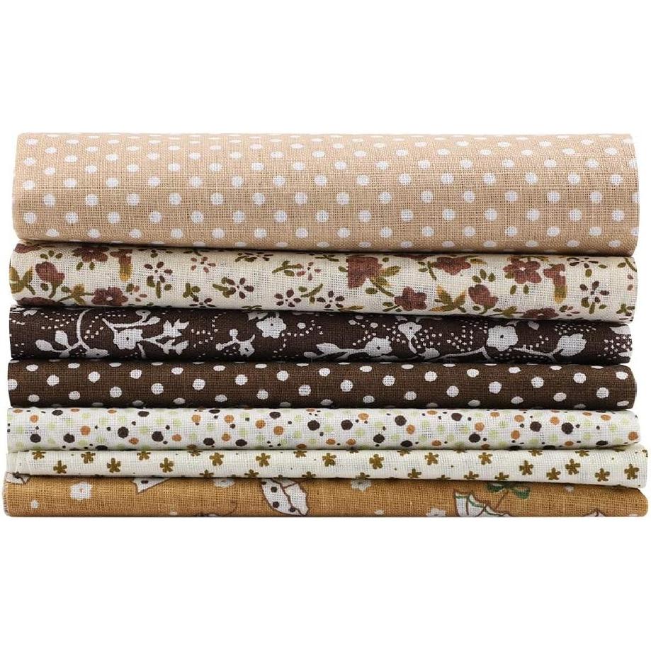 7pcs 50x50cm Cotton Fabrics DIY Floral Dots Assorted Pre-Cut Quarters Bundle Cotton Quilt Fabric Sewing Quilting Patchwork(Brown)