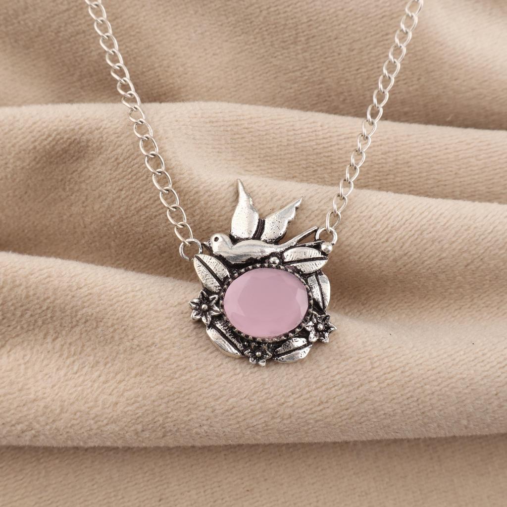 Rose Chalcedony Gemstone 925 Sterling Silver Pretty Pendant 0.5" Precious Gift For Her CP-43-22